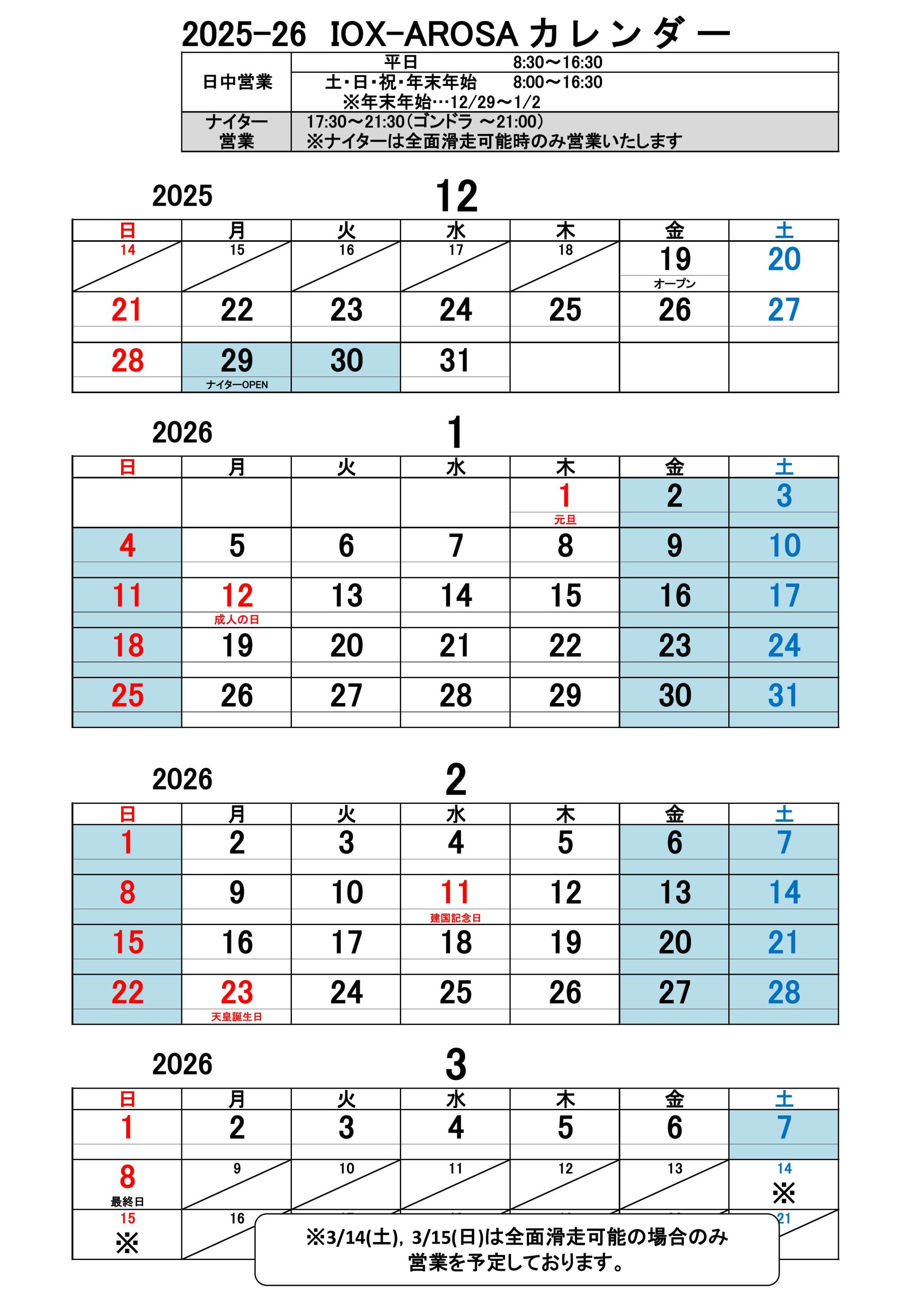 【料金】IOX-AROSAのシーズン券には早割の設定はございません。