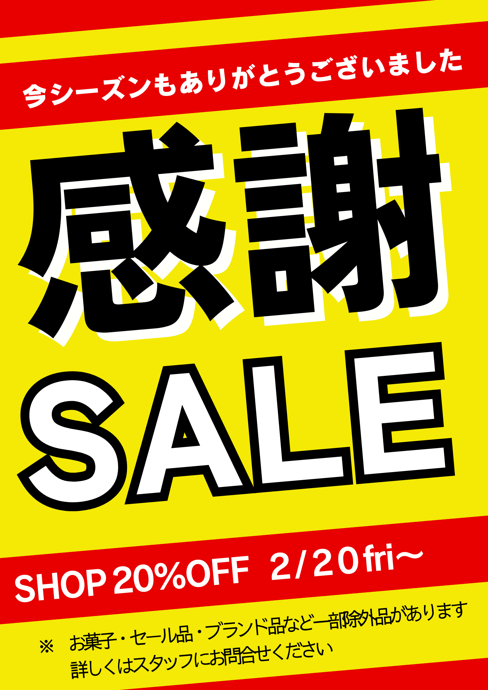 2025‐26シーズンも3月8日(日)までとなりました。SHOPでは、感謝の意を込めまして2月20日(金)~感謝SALEを開催いたします!欲しかったゴーグル、防水が効かなくなってきたグローブの買い替えなど、この機会にどうですか♪THE NORTH FACEも30%OFF!(スノーブーツ除く)ぜひ、SHOPにお立ち寄りくださいね